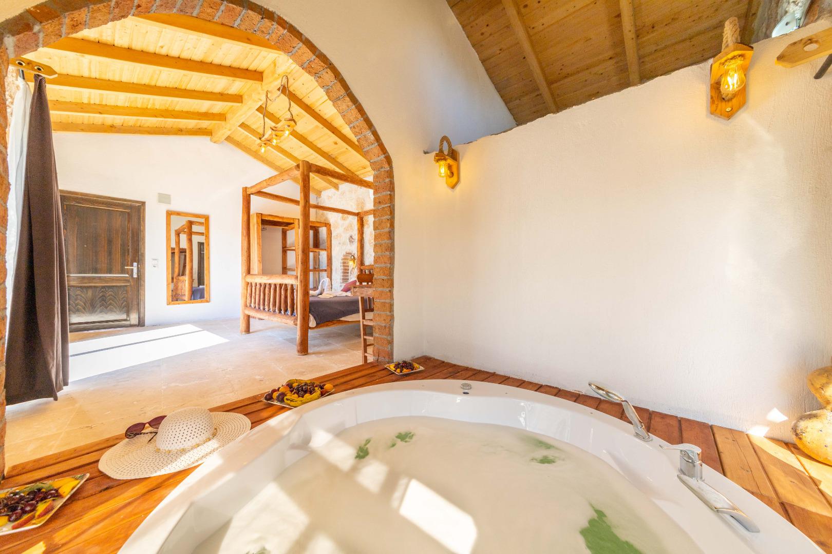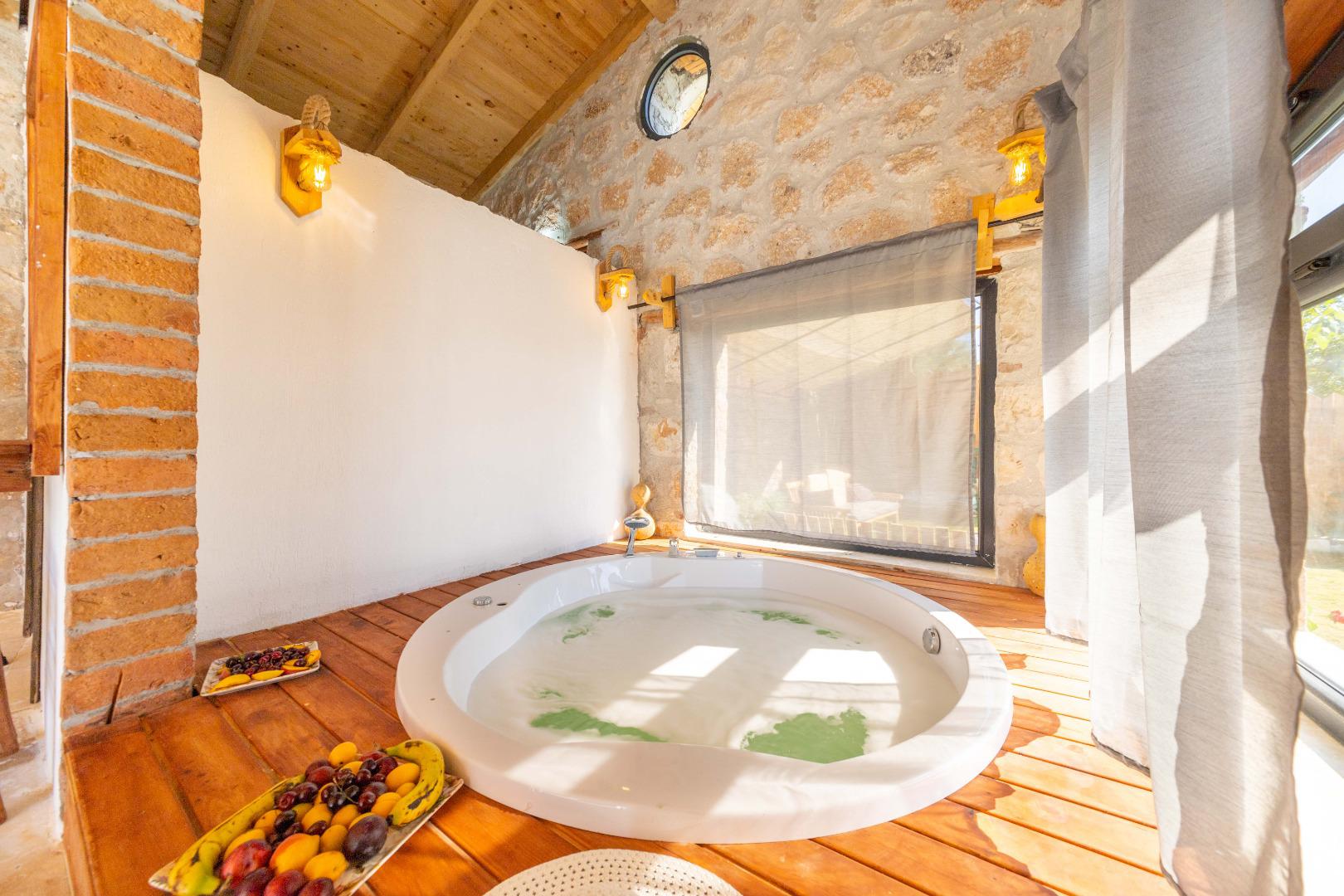 Jakuzi: Günün yorgunluğunu atabileceğiniz rahatlatıcı jakuzi bulunmaktadır.