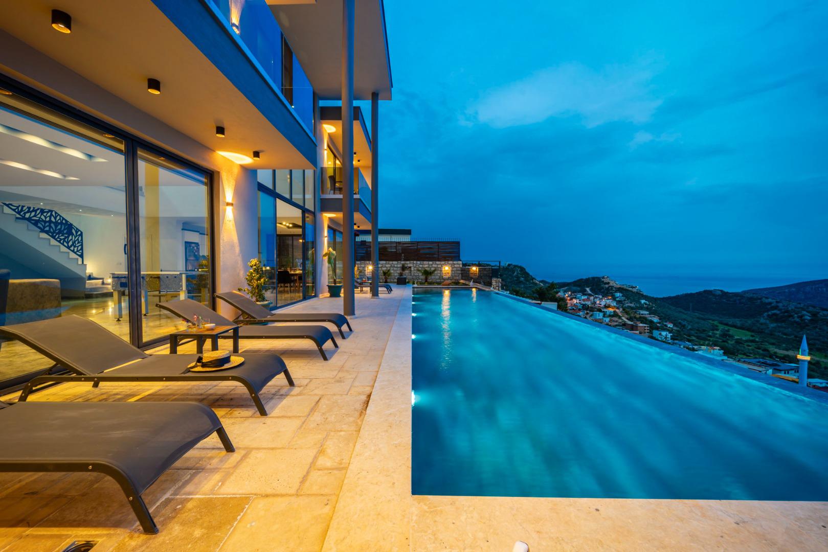 Villa Anıl, lüks donanımı, geniş yeşil bahçesi ve etkileyici deniz manzarasıyla misafirlerine konforlu bir tatil deneyimi sunar. Korunaklı açık havuzu, hamamı, saunası ve jakuzisiyle hem dinlenme hem de eğlence imkanı sağlar. Aileler ve arkadaş grupları için ideal olan Villa Anıl, çocuk havuzu ve oyun parkı gibi olanaklarıyla da öne çıkmaktadır.