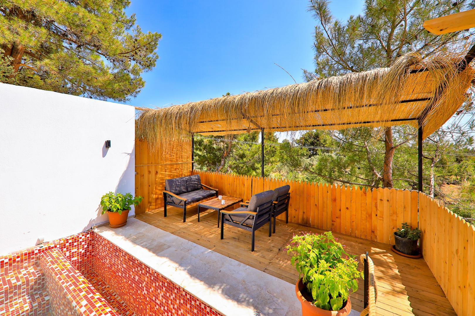 Villa Breathe, 4 kişilik kapasitesiyle, doğa içerisinde sakin ve lüks bir tatil deneyimi sunan özel bir villadır. Göz alıcı doğa manzarası eşliğinde konumlanan villa; çift jakuzi, sauna, hamam ve kapalı ısıtmalı havuzu ile konforu zirveye taşır. Bahçesindeki salıncak sayesinde doğanın keyfini doyasıya çıkarabilir, özel spa alanlarında tüm yılın yorgunluğunu atabilirsiniz.
