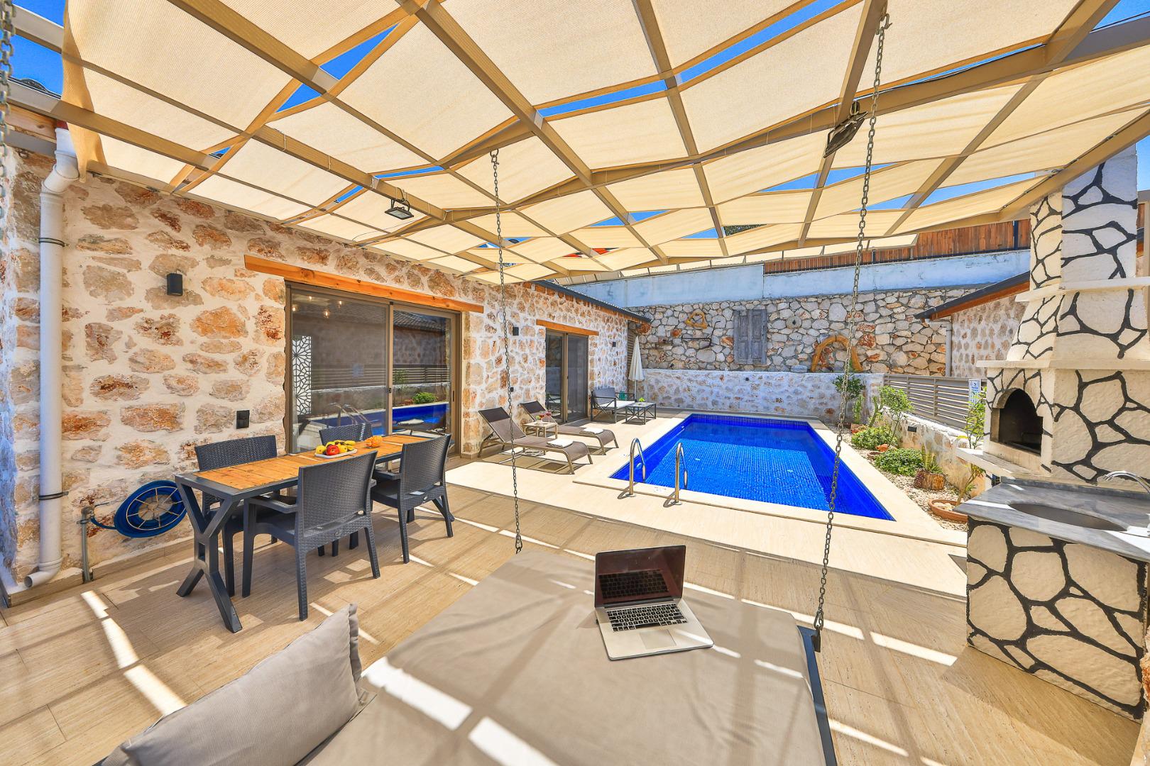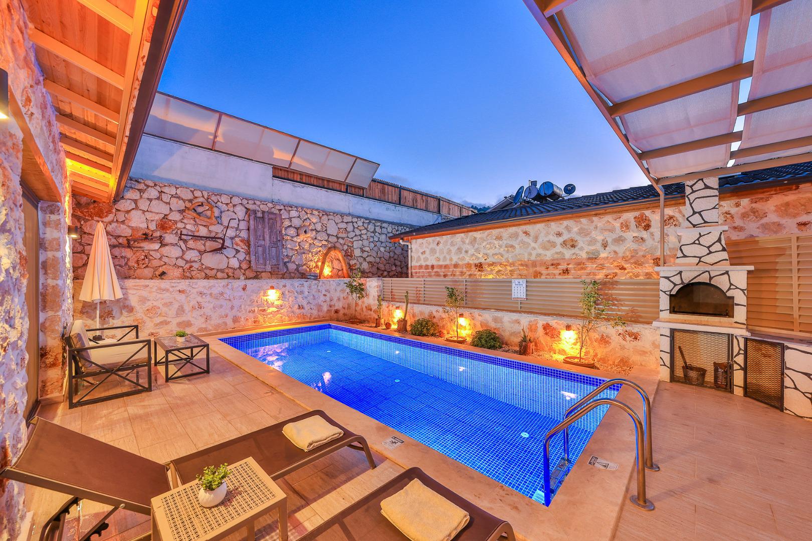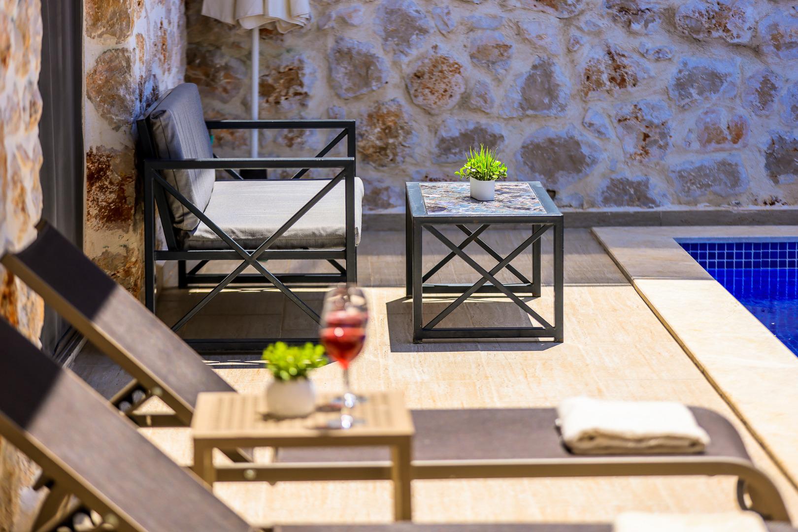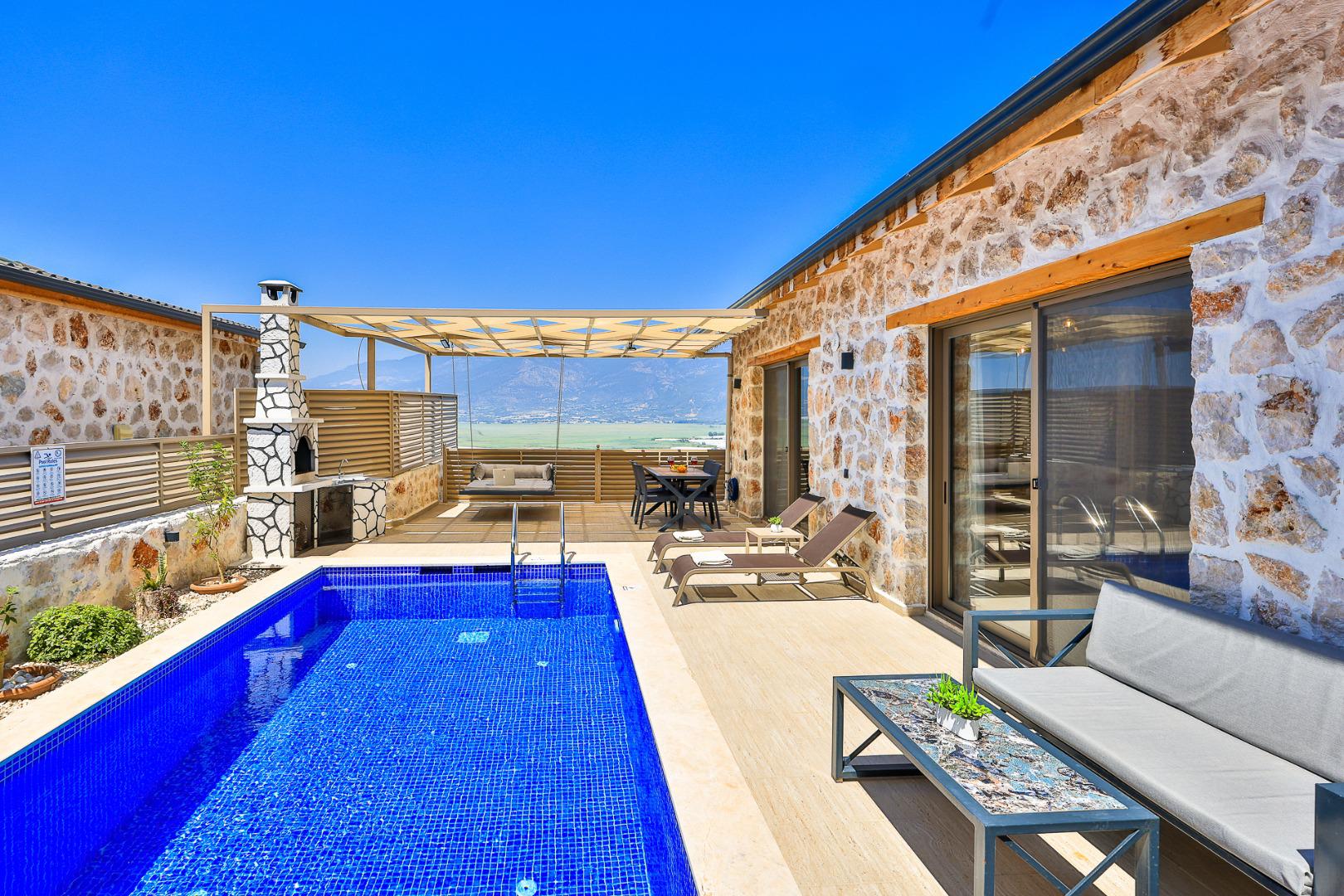 Villa Dio, 2 kişilik konaklama kapasitesine sahip, doğa içerisinde yer alan ve korunaklı yapısı ile tamamen özel bir tatil deneyimi sunar. Salıncağı ile rahatlatıcı bir açık alan keyfi sağlarken, jakuzisiyle de konforlu bir dinlenme imkanı sunar. Lüks bir atmosferde, gözlerden uzak ve huzurlu bir tatil için mükemmel bir tercihtir.