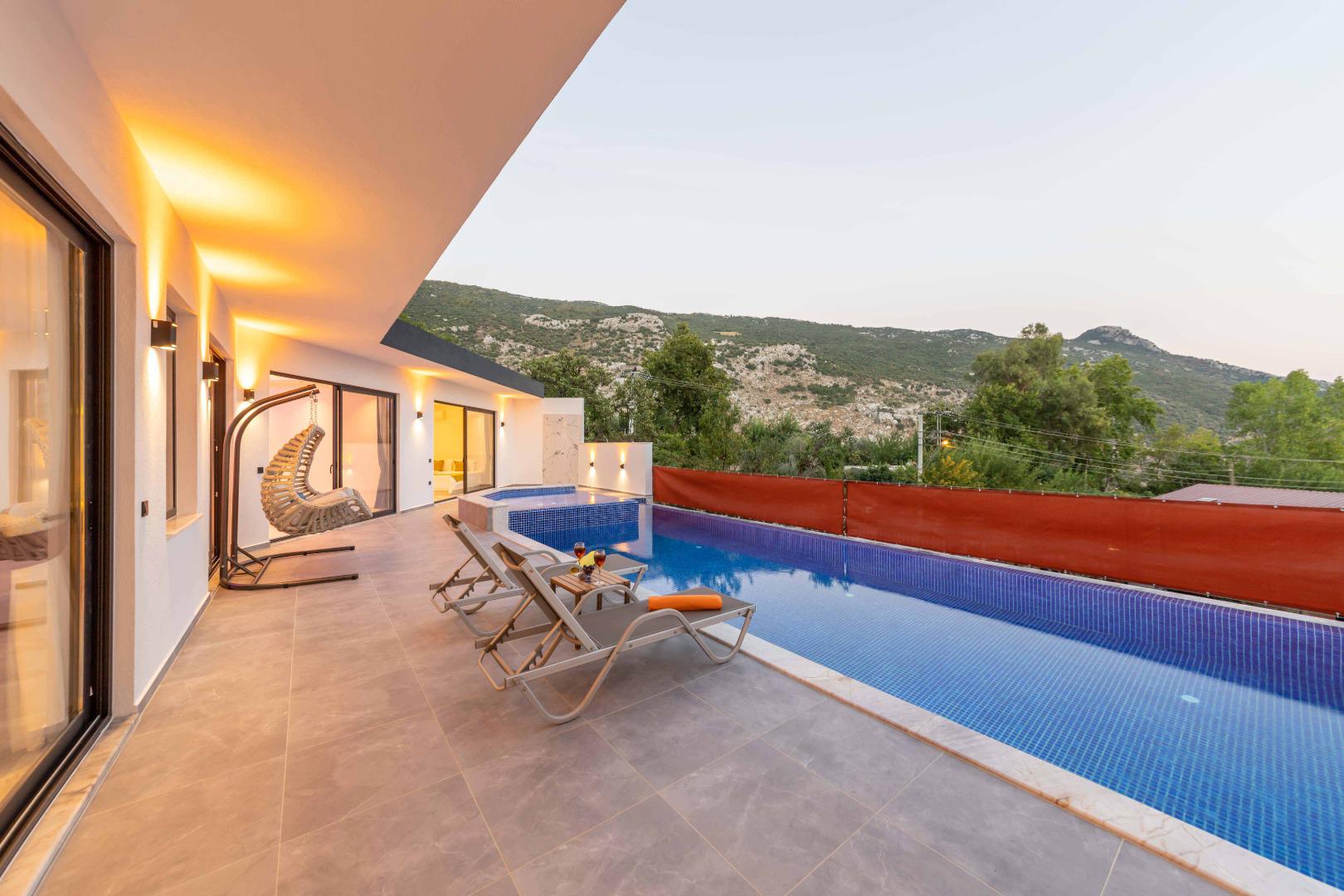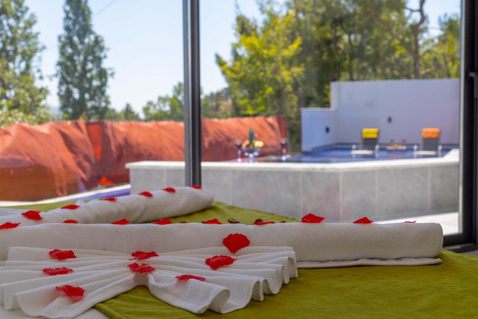 Jakuzili Dinlenme Alanı: Tatil boyunca rahatlayabileceğiniz, keyifli ve konforlu bir jakuzi alanı sunar.