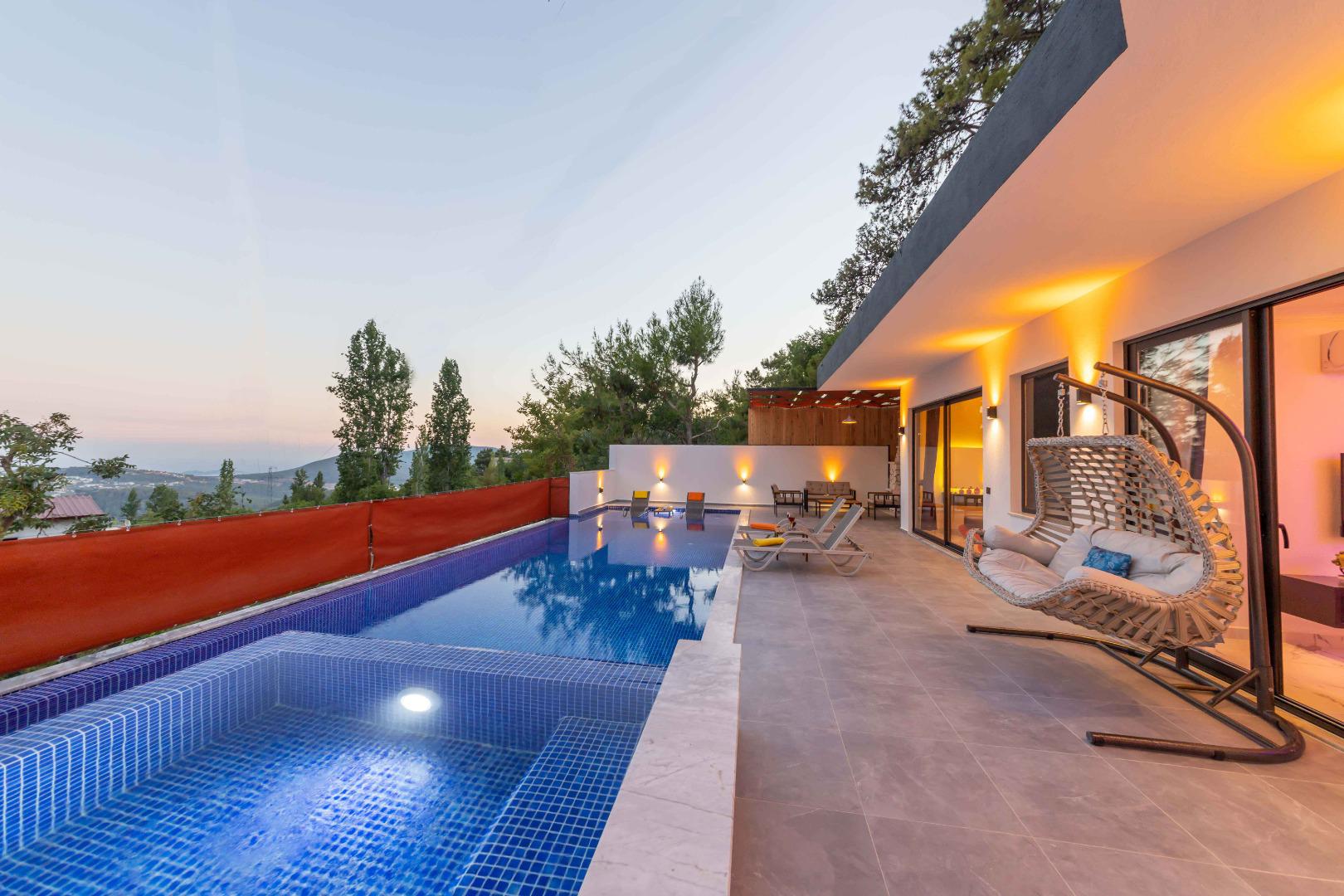 Villa Dobulcan, 5 kişilik kapasitesiyle, doğa içerisinde konumlanmış, doğa manzaralı ve korunaklı yapısıyla sakin ve konforlu bir tatil arayan misafirler için ideal bir tatil villasıdır. Jakuzisi, salıncağı ve çocuk havuzu ile hem yetişkinler hem de çocuklar için keyifli ve rahat bir tatil deneyimi sunar.