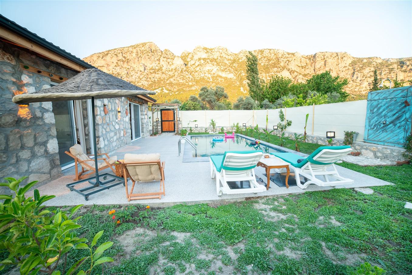 Villa Eren Köy Evim, 2 kişilik kapasitesiyle doğa içerisinde konumlanmış, taş mimarisiyle dikkat çeken şirin ve korunaklı bir tatil villasıdır. Doğa manzarası eşliğinde huzurlu anlar sunarken, bahçesiyle de keyifli vakit geçirme imkânı sağlar.