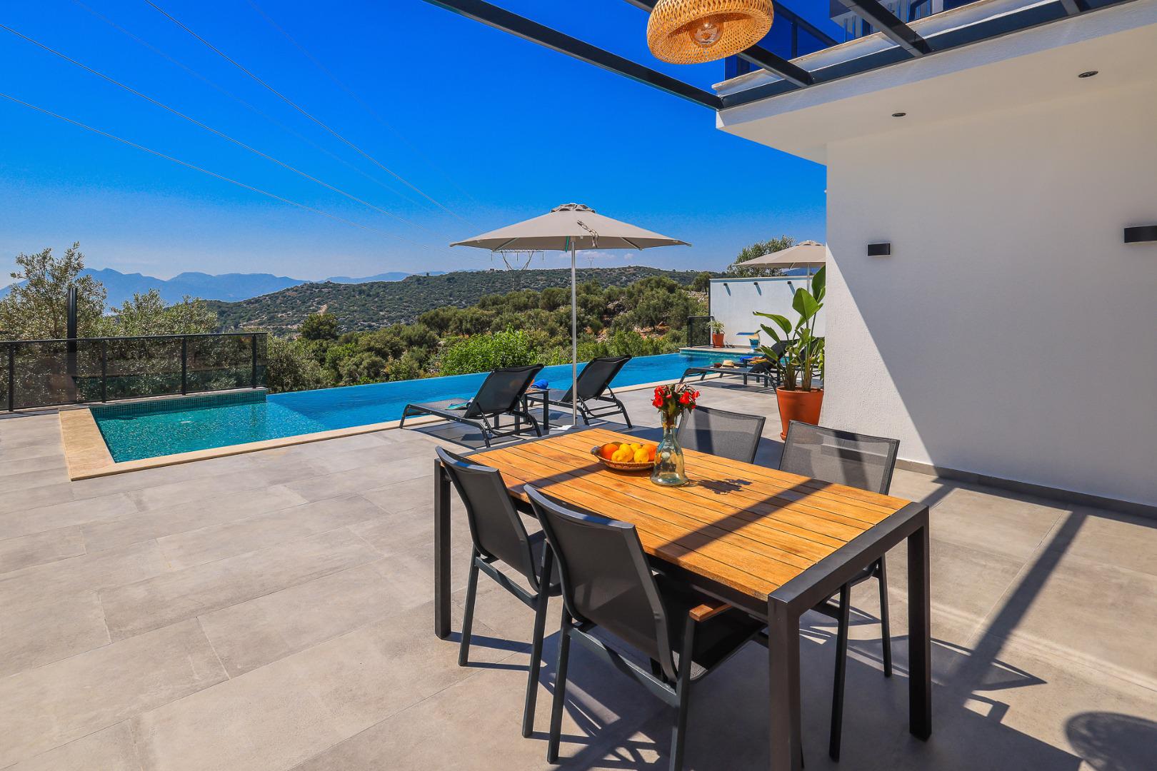 Geniş Havuz Terası: Güneşlenme ve dinlenme için mükemmel bir alan.