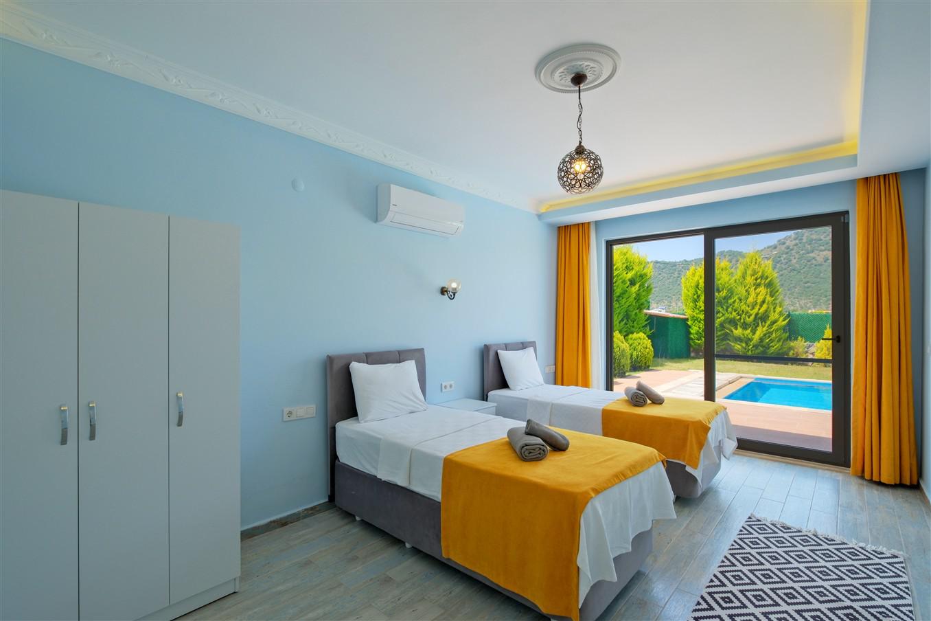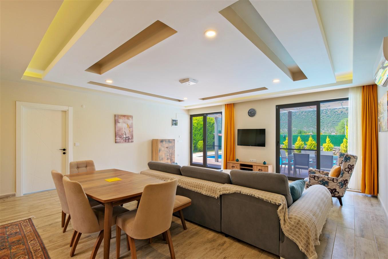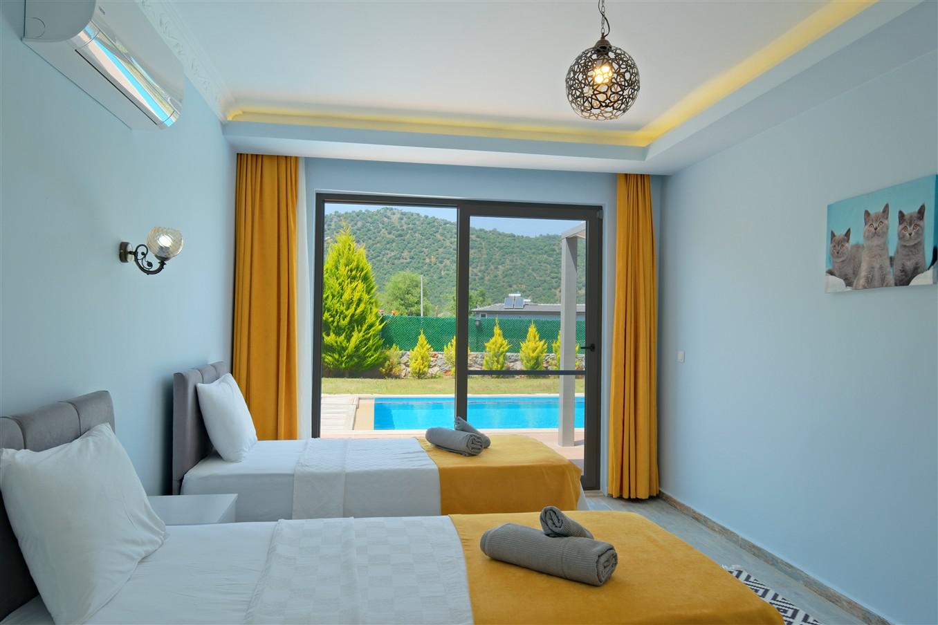 Villa Hayat 1, 4 kişilik kapasitesiyle, Kayaköy’ün yemyeşil doğası içerisinde konumlanmış, korunaklı yapısı sayesinde misafirlerine tamamen özel bir tatil deneyimi sunan modern bir villadır. Geniş bahçesi, doğa manzarası ve sakin atmosferiyle konforlu bir konaklama imkânı sağlar. Bahçesinde yer alan çocuk havuzu, jakuzi ve salıncak ile hem yetişkinler hem de çocuklar için keyifli bir ortam oluşturur. Doğayla iç içe konumu sayesinde kuş sesleri eşliğinde huzurlu bir tatil geçirebilir, özel alanınızda rahatlığın tadını çıkarabilirsiniz.
