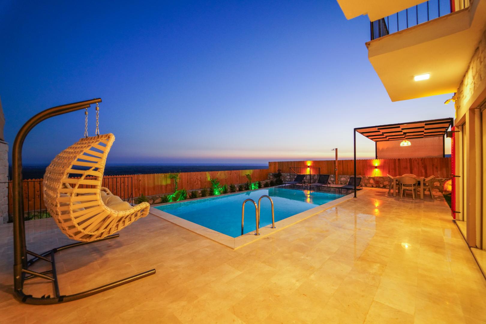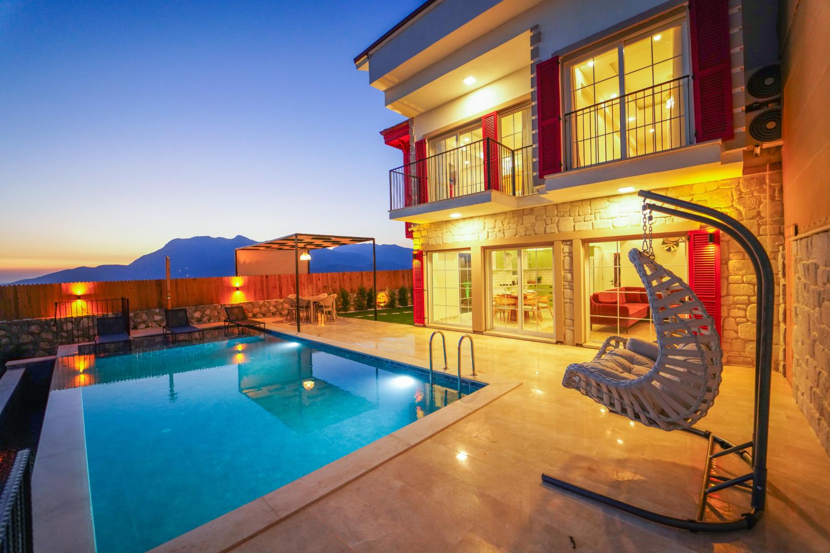Villa Kayra Konak 1, Patara'nın eşsiz deniz manzarası eşliğinde sakin bir tatil deneyimi sunan özel bir villadır. 6 kişilik konaklama kapasitesine sahip olan bu villa, modern dizaynı ve pastel tonlarla dekore edilmiş iç mekanlarıyla zarif bir atmosfer yaratır. Bahçesinde bulunan salıncağı ve jakuzisiyle dinlendirici bir tatil sunar.