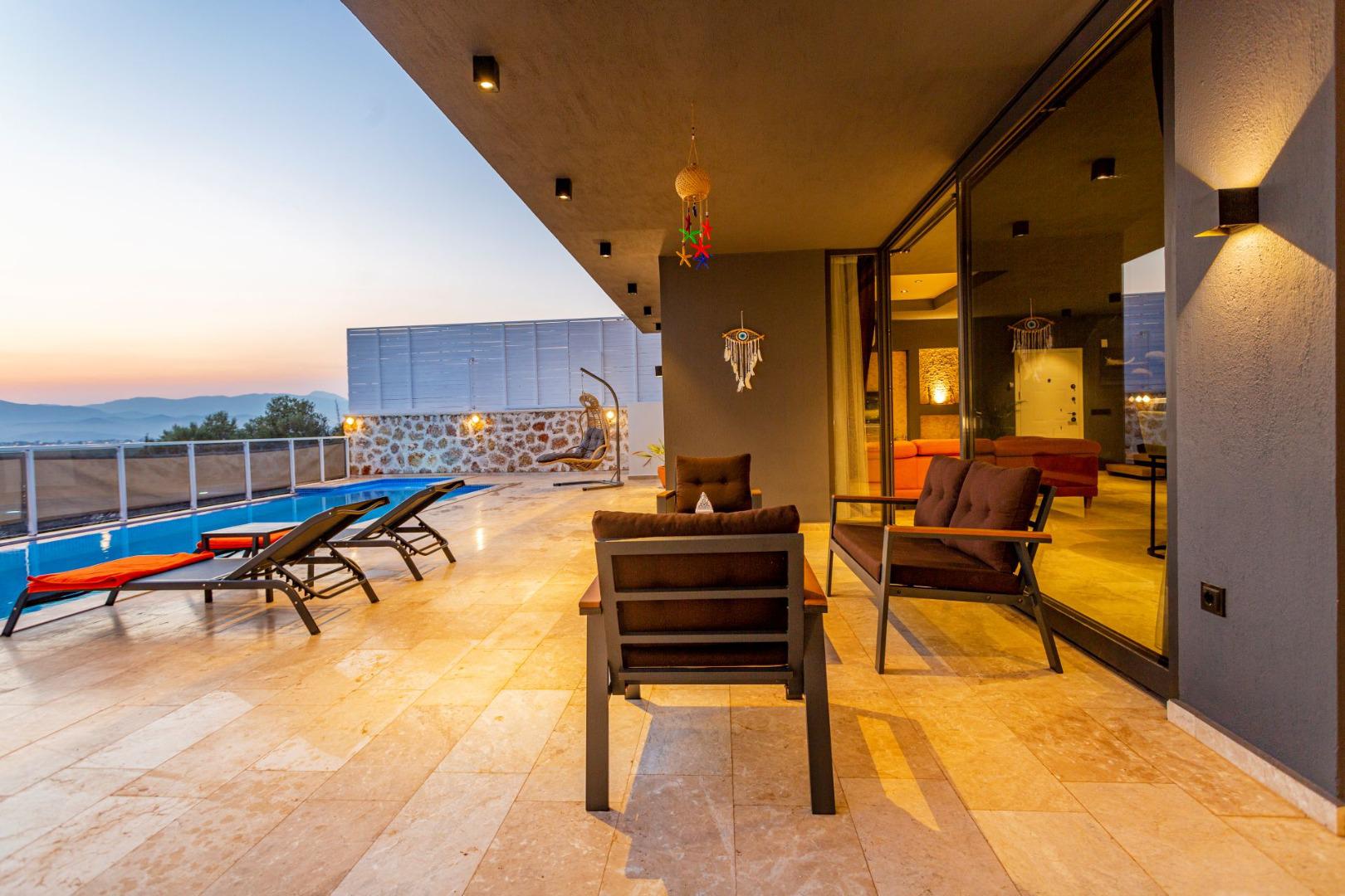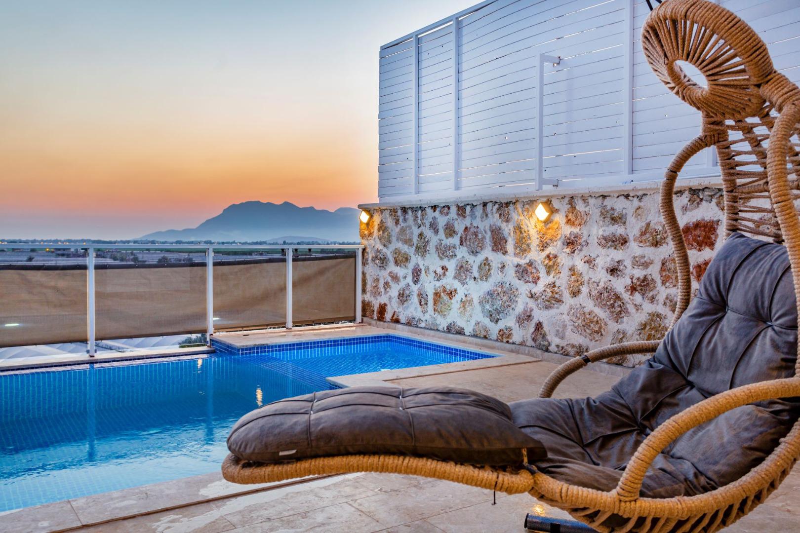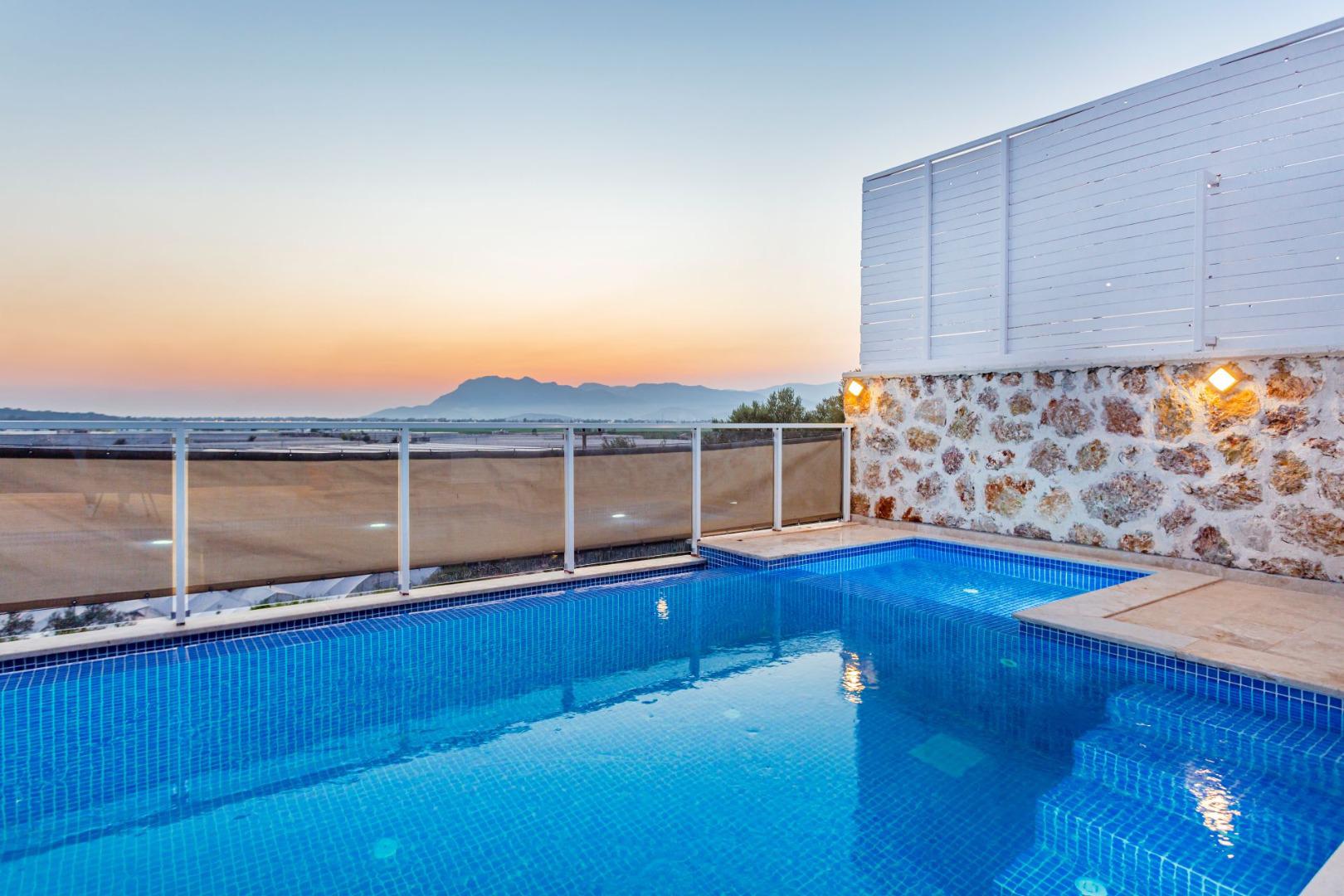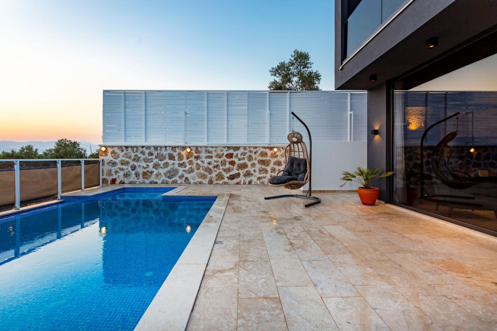 Villa Likya Exclusive, 6 kişilik kapasitesiyle, korunaklı yapısı, modern ve lüks dizaynı ile konforlu bir tatil imkânı sunar. Çocuk havuzu ve kapalı ısıtmalı havuzu sayesinde her mevsim keyifle konaklayabilirsiniz. Bahçesinde salıncak, çocuk oyun alanı ve masa tenisi gibi aktivitelerle hem yetişkinler hem de çocuklar için eğlenceli bir atmosfer oluşturulmuştur.