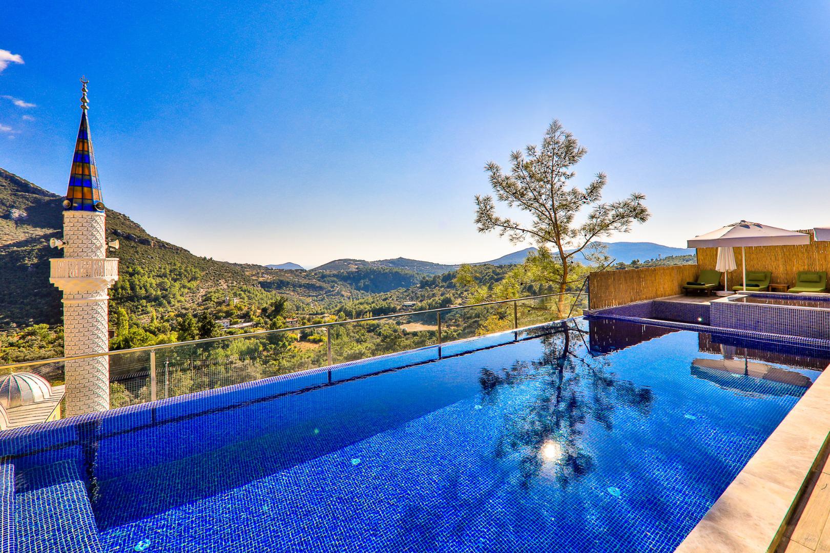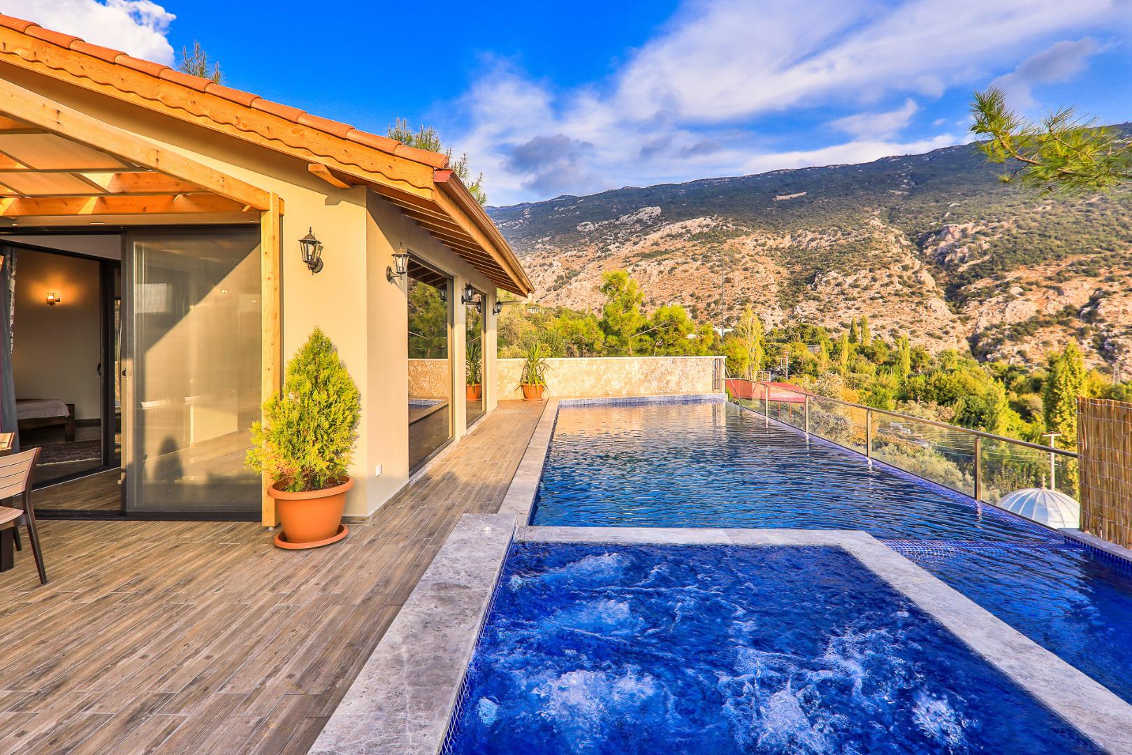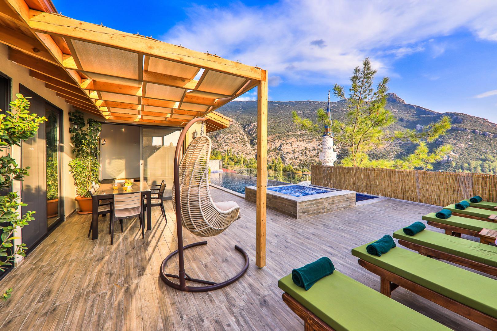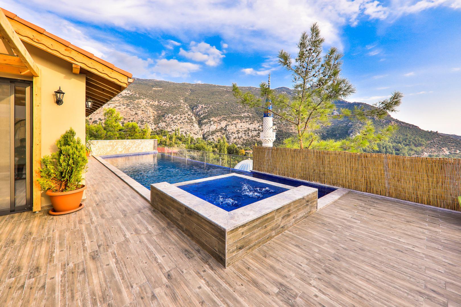 Villa Myra, 6 kişilik konaklama kapasitesine sahip, Kalkan’ın İslamlar bölgesinde doğa içerisinde konumlanan muhafazakâr bir tatil villasıdır. Korunaklı yapısı sayesinde gözlerden uzak, huzurlu ve konforlu bir tatil imkânı sunar. Villada yer alan kapalı havuz, sıcak havuz ve jakuzi gibi olanaklar misafirlerine rahatlatıcı bir tatil deneyimi yaşatırken, çocuk havuzu sayesinde aileler için de ideal bir konaklama imkânı sağlar. Bahçesinde bulunan salıncak ve langırt ile keyifli vakit geçirebilir, doğa manzarası eşliğinde sakin ve huzurlu bir tatil geçirebilirsiniz.