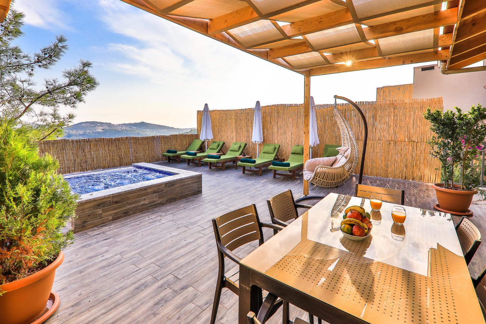 Jakuzi: Günün yorgunluğunu atabileceğiniz rahatlatıcı jakuzi bulunmaktadır.