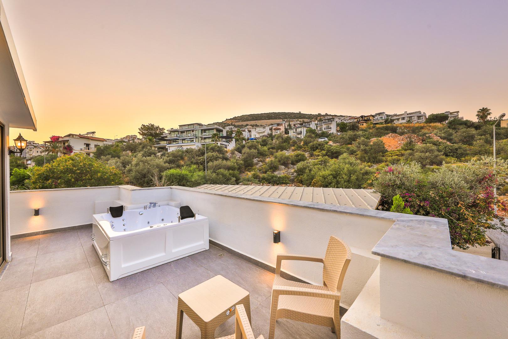 Terasta Jakuzi: Açık havada rahatlatıcı bir dinlenme alanı.