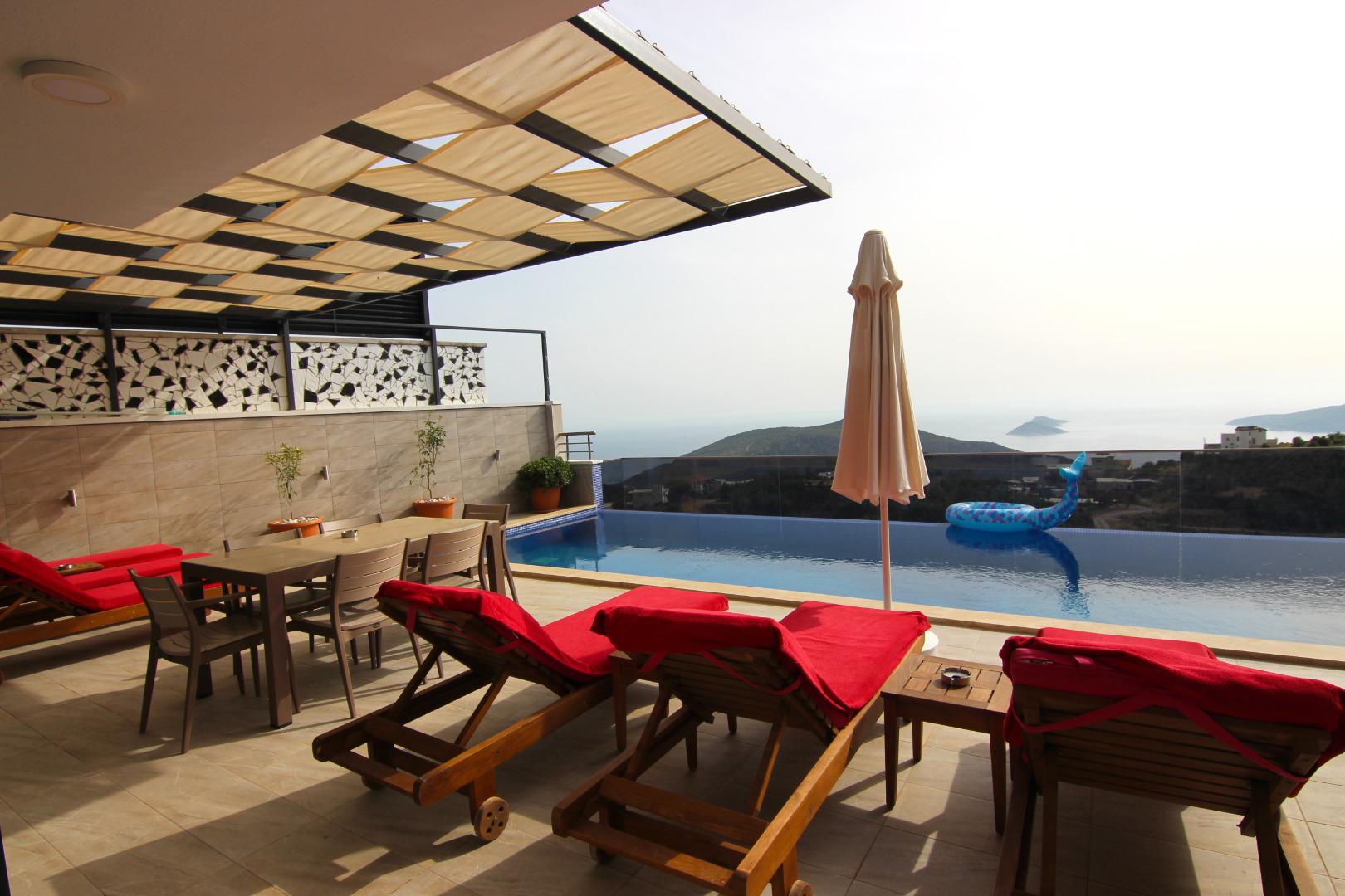 Villa Zaza, Kalkan’ın eşsiz deniz manzarasına karşı, lüks ve konforu bir araya getiren harika bir tatil villasıdır. 6 kişilik kapasitesiyle aileler ve arkadaş grupları için ideal olan villa, ısıtmalı kapalı havuz, sauna, jakuzi ve çeşitli eğlence alanlarıyla unutulmaz bir tatil sunar. Modern tasarımı, geniş yaşam alanları ve deniz manzaralı konumu sayesinde huzurlu bir ortamda keyifli bir deneyim sağlar.