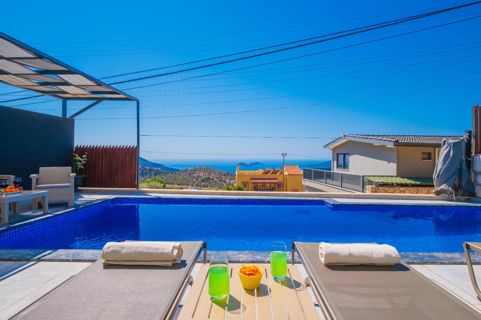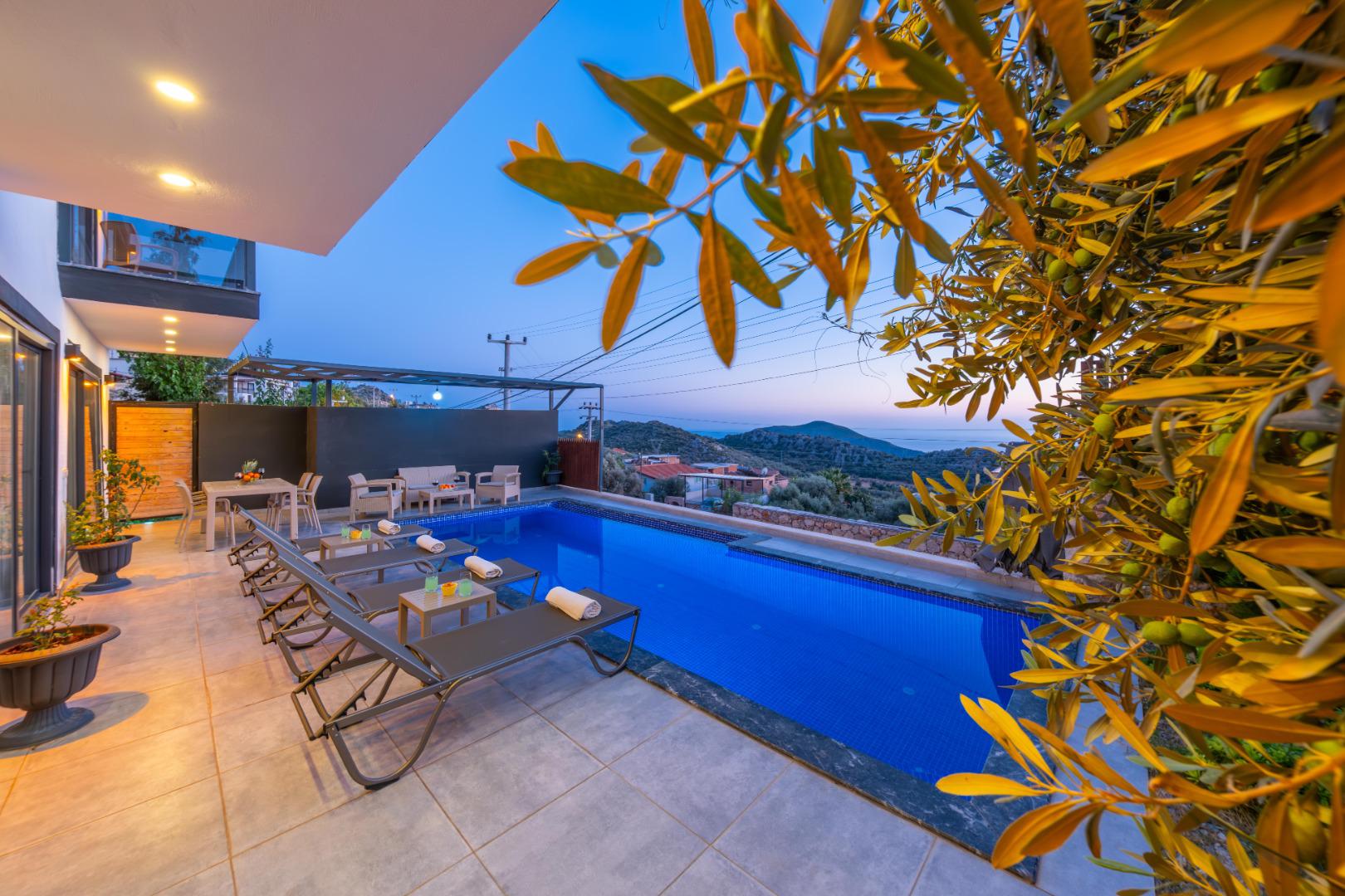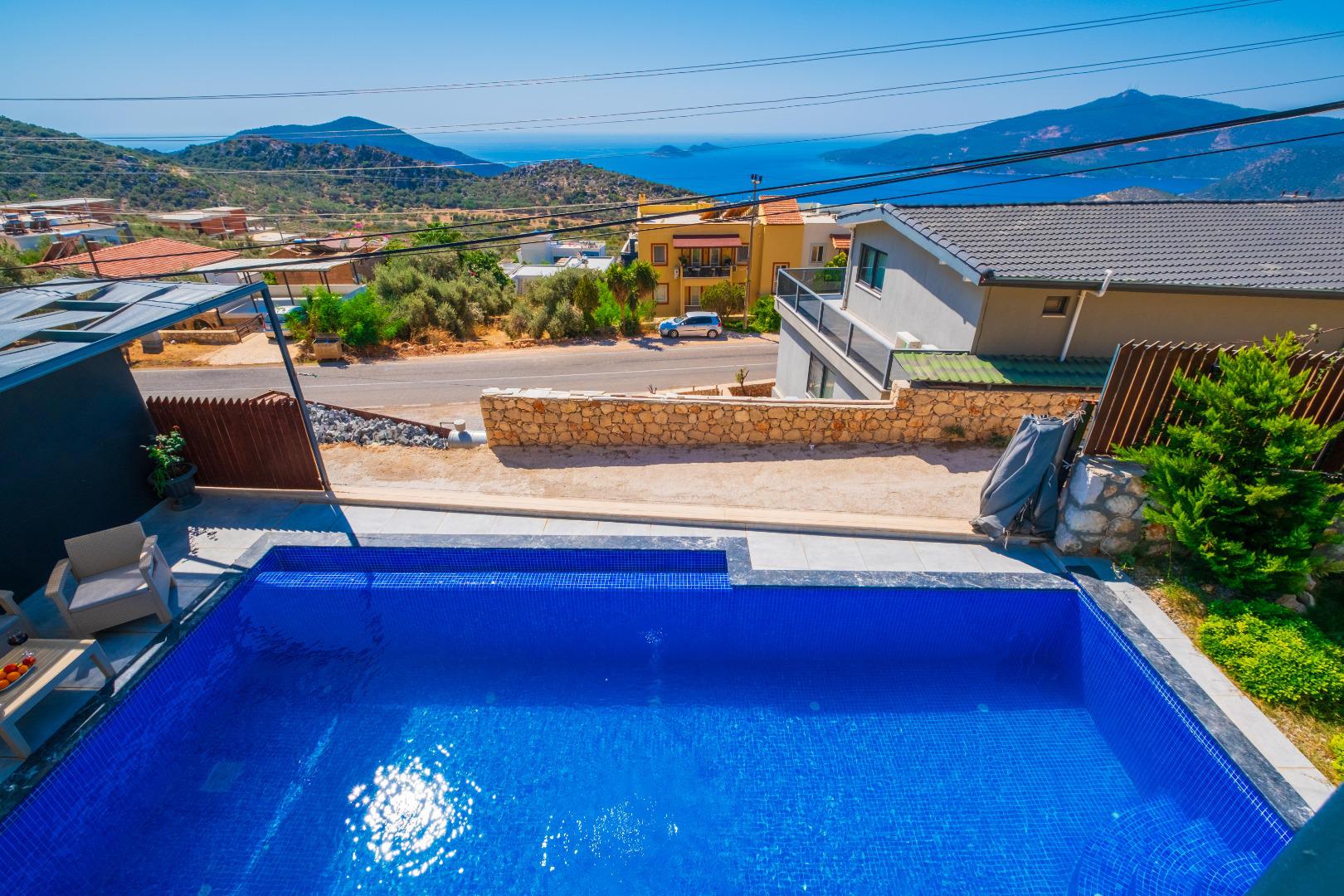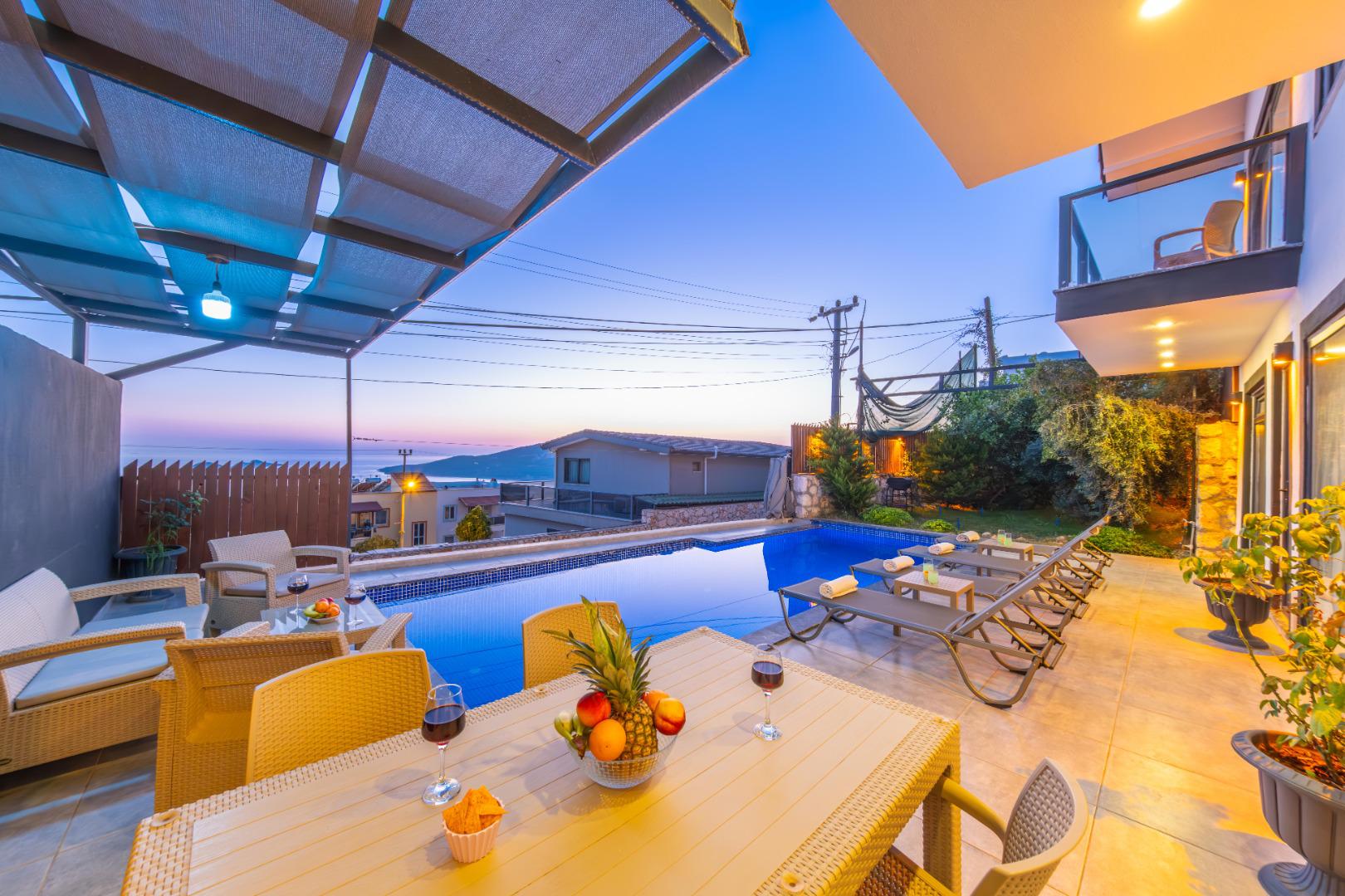 Korunaklı Yapı: Havuz ve bahçe alanı dışarıdan görünmeye karşı korunaklıdır, gözlerden uzak tatil imkânı sunar.