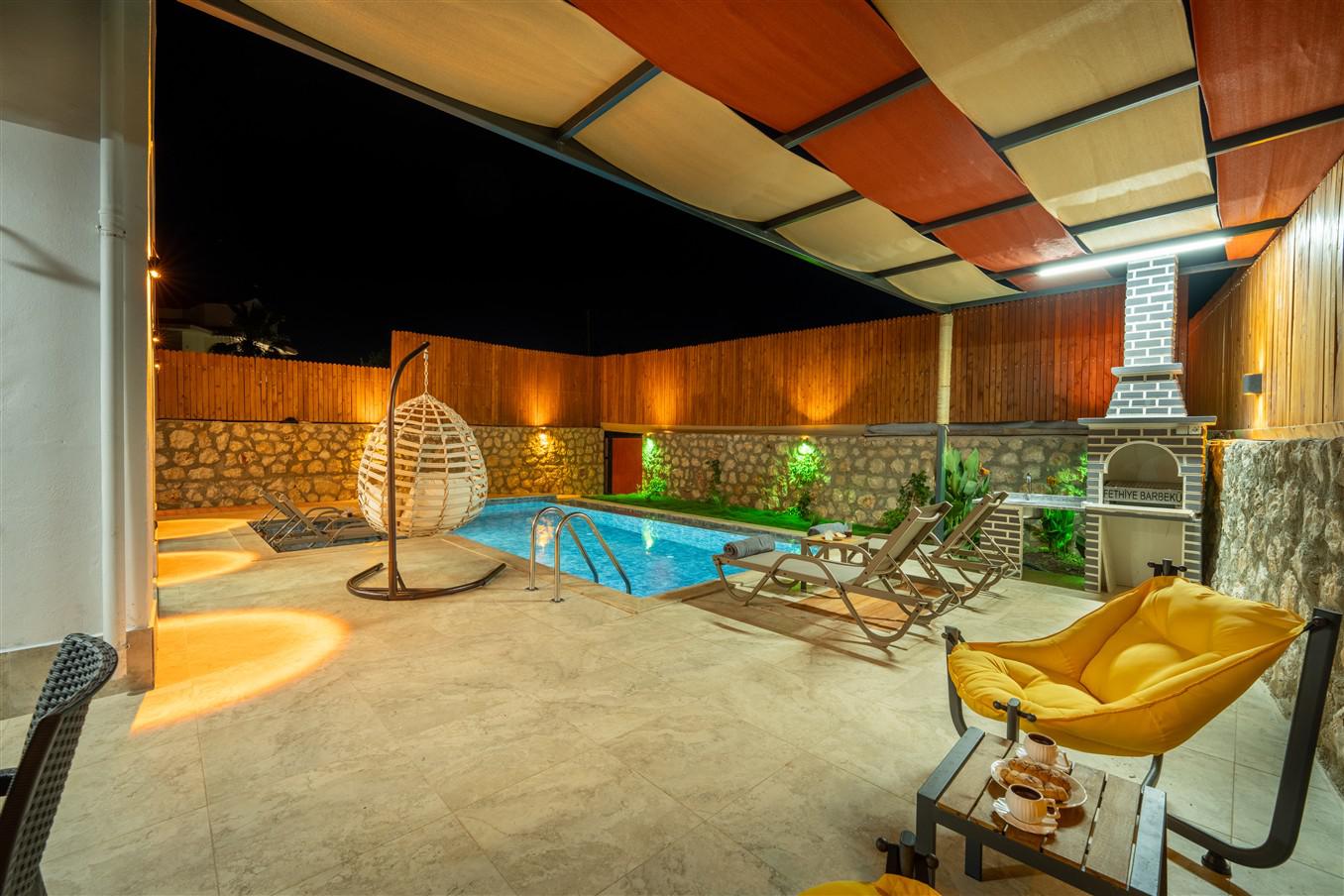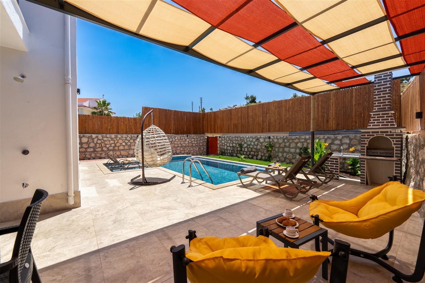 Villa Şirinler, 6 kişilik kapasitesiyle doğa içerisinde konumlanmış, huzur dolu bir tatil sunan konforlu bir villadır. Doğa manzaralı yapısı sayesinde yeşillikler içinde keyifli bir atmosferde konaklama imkânı sunar. Bahçesinde bulunan salıncak ile keyifli anlar yaşayabilir, jakuzisiyle tatilinize konfor katabilirsiniz.